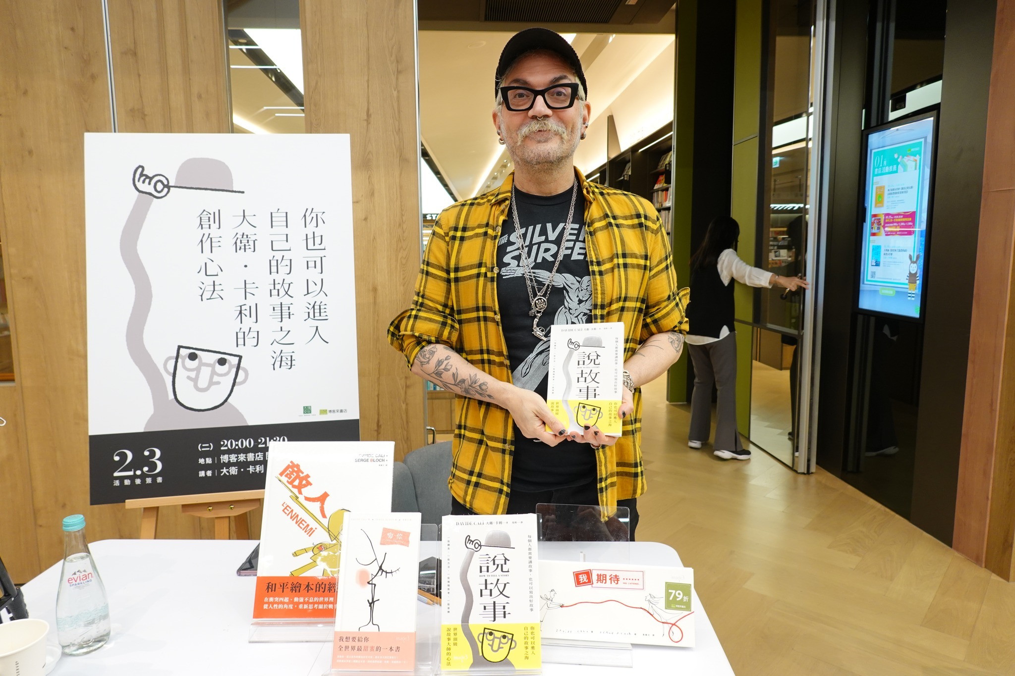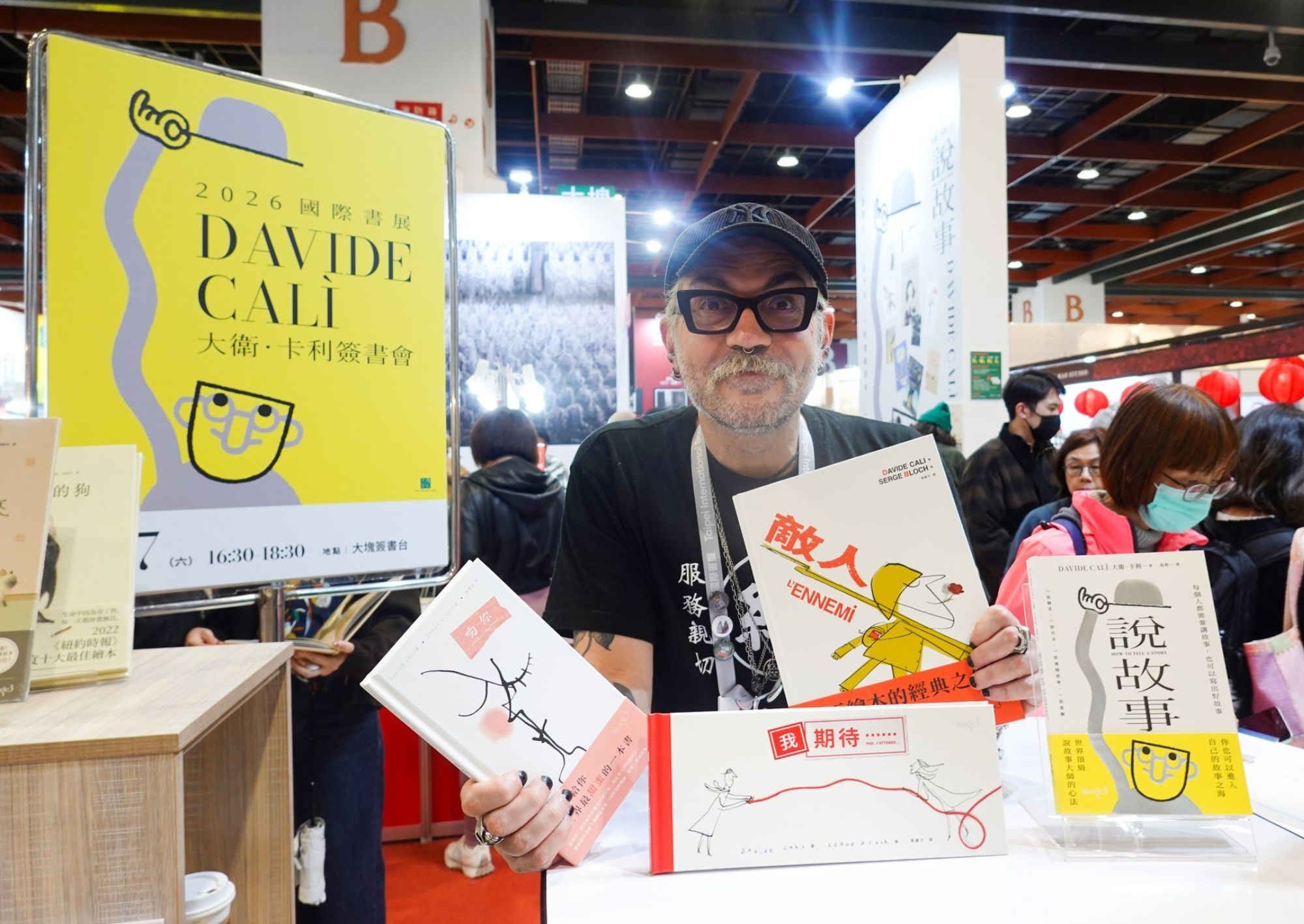 今年二月在台北國際書展上,見到裝扮龐克、雙臂三頭肌分別刺著蝴蝶與飛蛾,說起話來卻溫柔幽默的大衛.卡利(Davide Calì)。他帶來數本新書(其中包含改版重出的繪本與論述創作的新書),並分享自己的創作方法與靈感清單:搖滾樂、童年回憶、時事新聞,甚至是與朋友的閒聊打賭 。